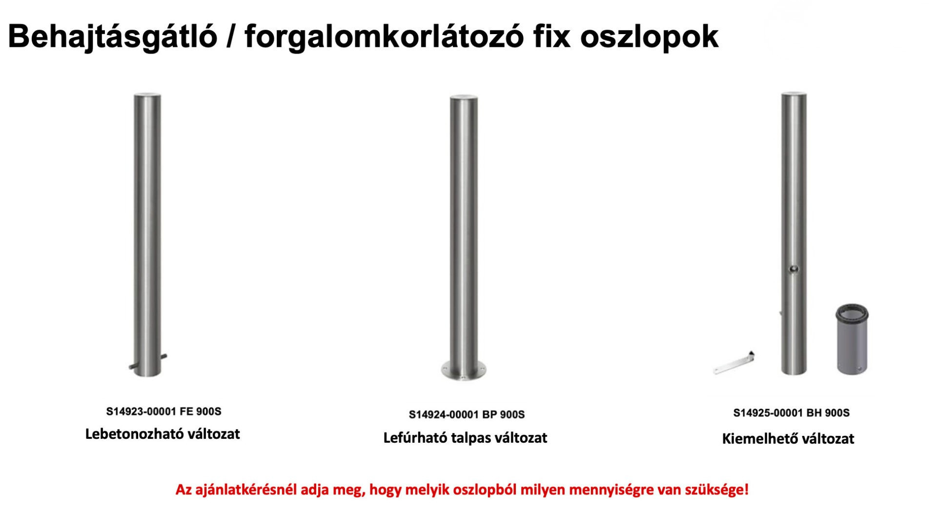 A forgalomkorlátozó rendszer kiépítéséhez rendelkezésre áll három féle fix oszlop: