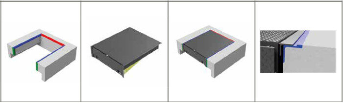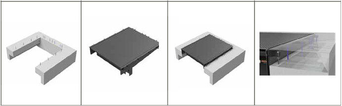 ✓ Két rögzített oldalsó válaszfallal rendelkezik, amelyeket 6/8-os hornyolt acéllemez borít.