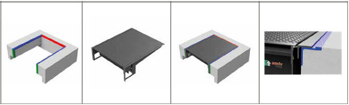 ✓ Az AMTR-D előzsilip állítható lábakkal ellátott tartókeretből és felépítményből áll.