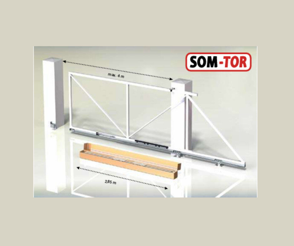 • Robosztus úszókapu sínszerkezet görgőcsoportokkal, 73 x 61 x 3,5 mm sínmérettel és 8 csapágyazott görgővel SOM-TOR all in one 40