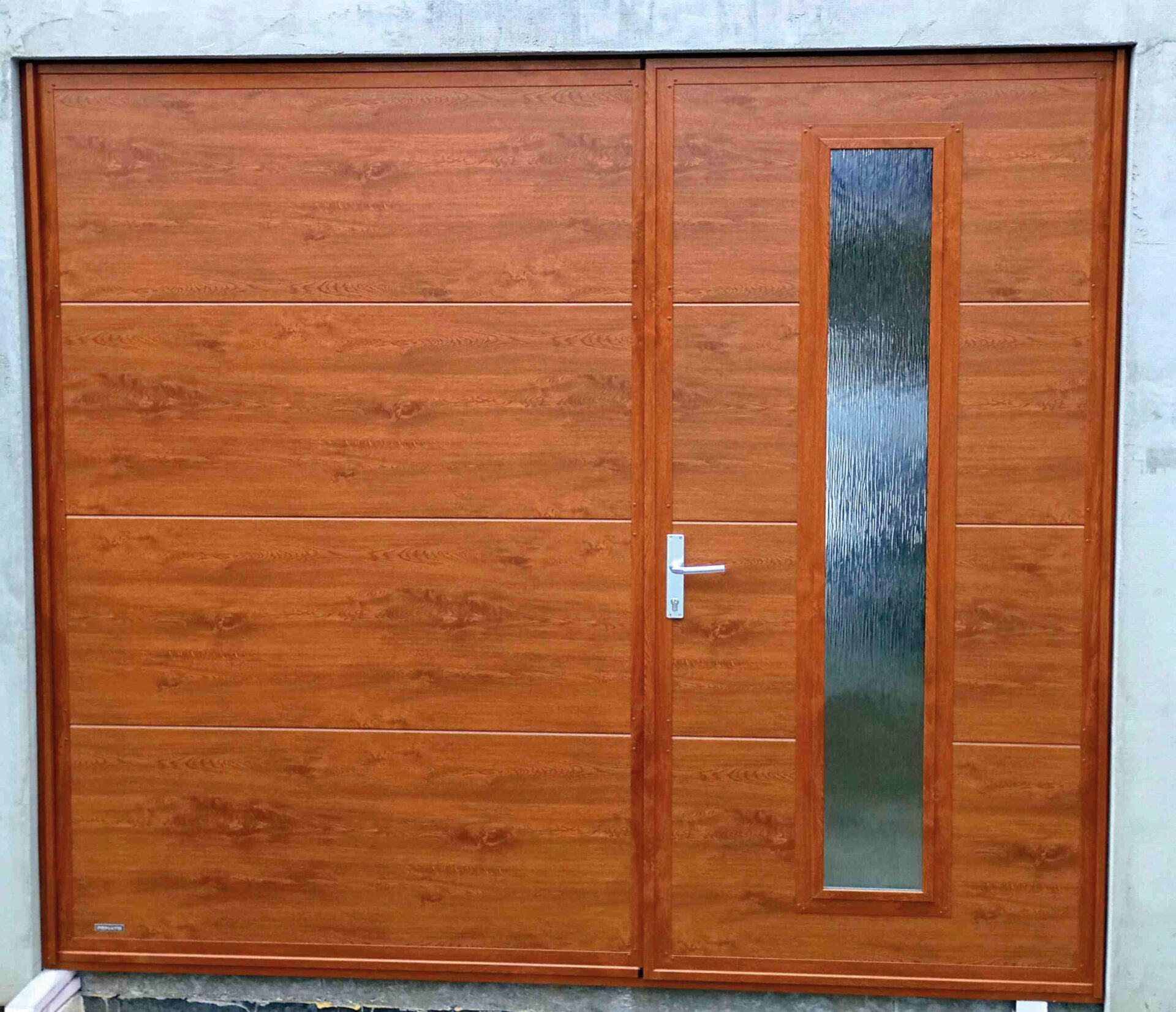 Asszimetrikusan osztott kétszárnyas garázskapu vízszintes felülvilágítóval