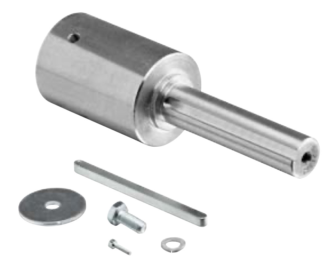 • Tengelyvégi hajtómű ipari kapu rugótengelyére történő csatlakoztatásához használható, ha a hajtómű tengelyfogadója és a kaputengely átmérője nem azonos.